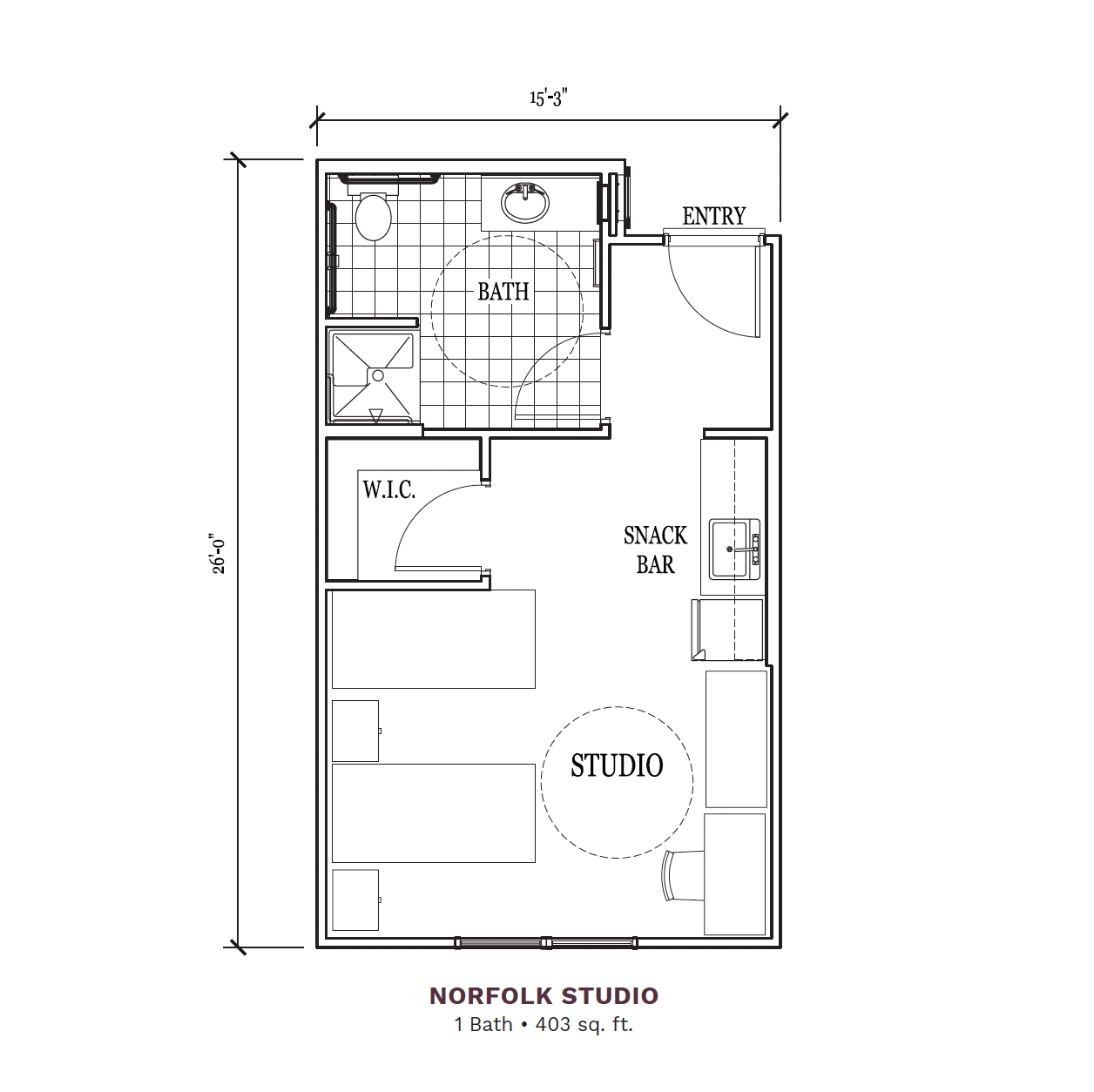 Choice of studio and two-bedroom apartment styles featuring bathrooms with safety features